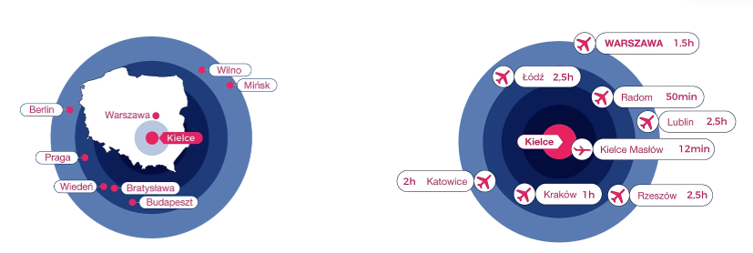 凯尔采在波兰有利的位置条件,紧邻港口,离边境也很近,便于各国参展者抵达。