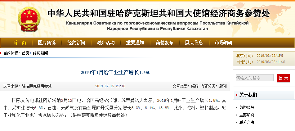 7.国际文传电讯社阿斯塔纳2月12日电,哈国民经济部部长苏莱曼诺夫表示,2019年1月哈工业生产增长1.9%。其中,采矿业增长6.8%,石油、天然气及有色金属矿开采量分别增长5.3%、6.1%、15.8%。此外,饮料、塑料制品、轻工业和化工业也呈快速增长态势。(驻哈萨克斯坦使馆经商参处)。在哈萨克斯坦当地塑料行业的前景还是很广阔的。