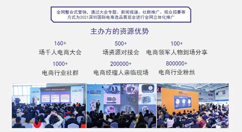 2020年为期两天的深圳国际电商选品展览会,共计260+参展商,210+工厂企业,吸引近26000+专业观众莅临展会现场,2021年展会全面升级,规模扩大至20000+平方米,展商超过620家,汇聚电商行业全产业链,工厂类型展商占比达80%,预计将迎来32000+名专业观众莅临参观,打造2021年最专业的电商选品展览会。