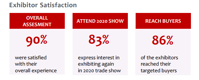 2019年Vietnam Plas的展位共800个,吸引了来自18多个国家和地区的580家展商前来参展,其中83%的展商有意向参加2020年Vietnam Plas。据展会报告显示,70%的观众以采购为目的前来观展,观众来自全球59个国家,越南买家占80%,境外买家占20%。